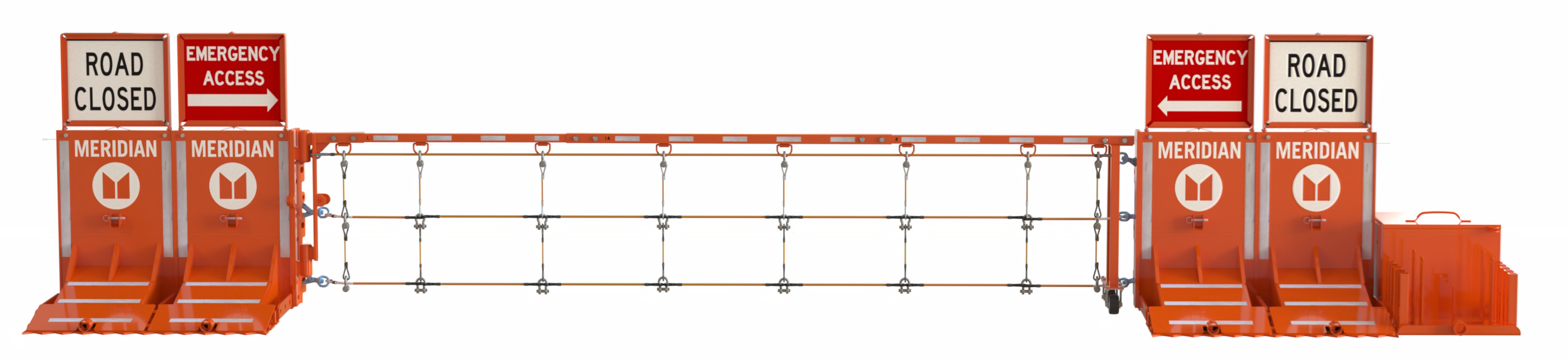 Blocks off active roadways and protects workers in dynamic job sites. Fast to deploy, easy to reposition, and requires no power or anchors.