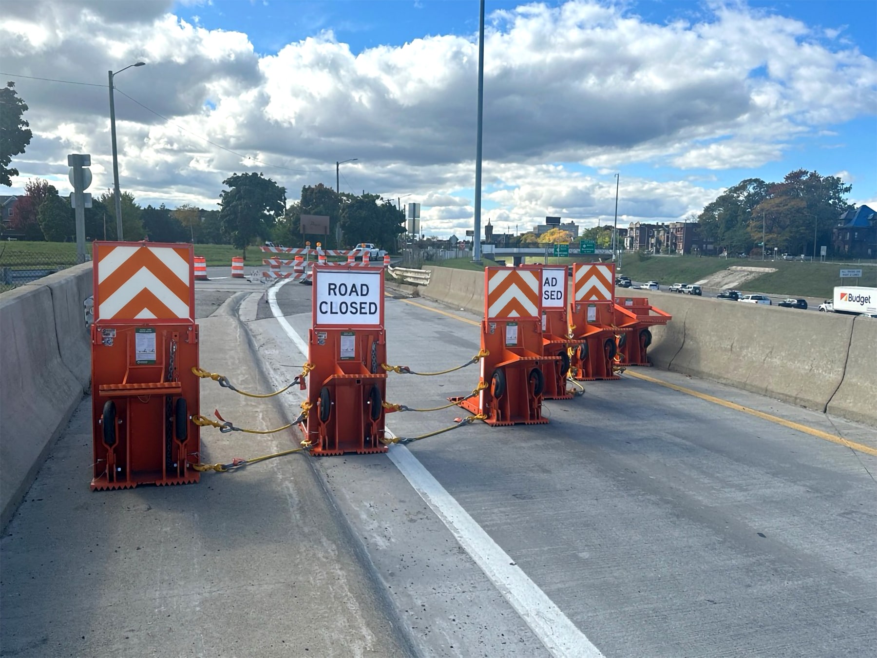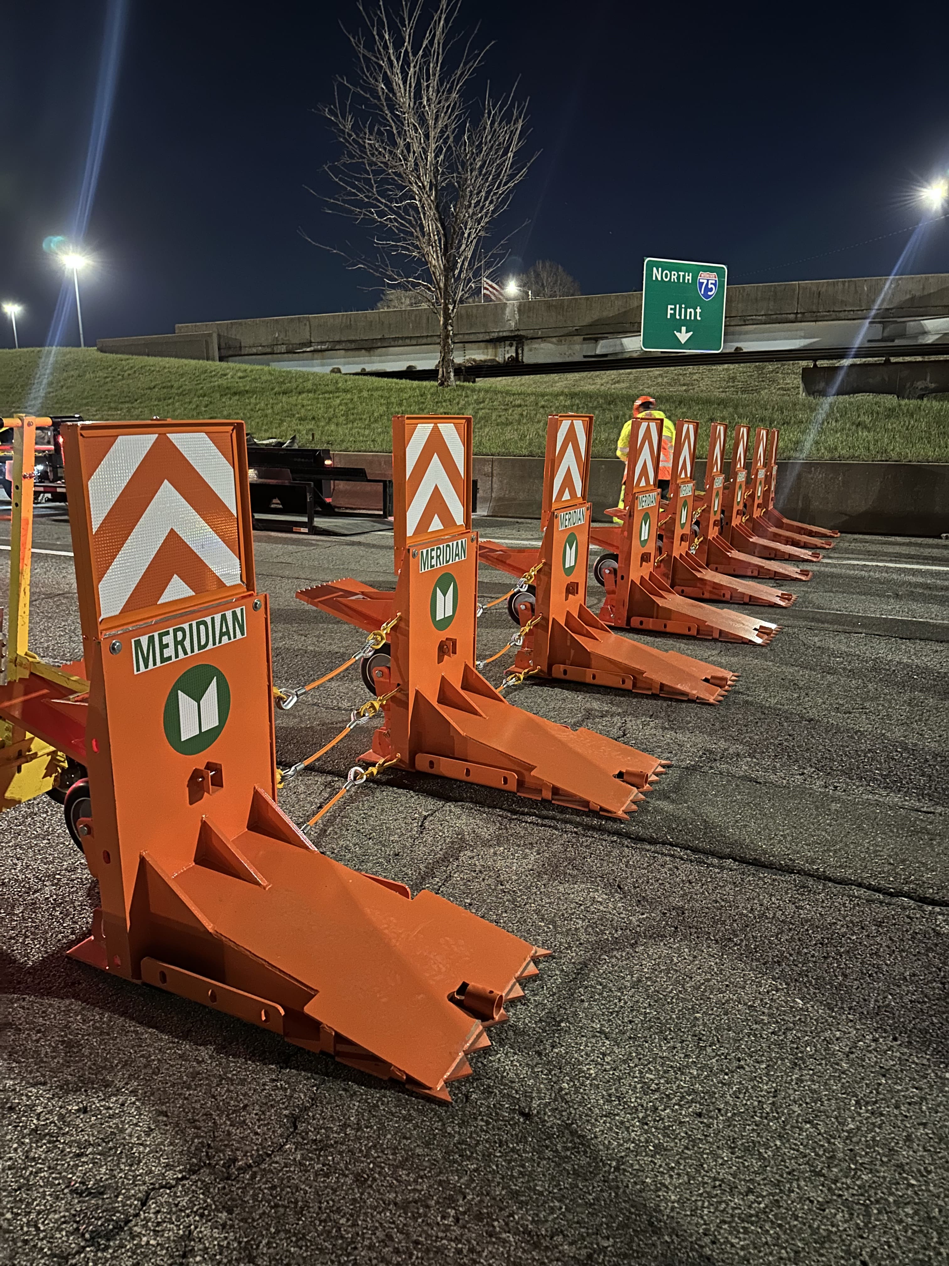 MASH TL-3 barrier system for work zones. Reusable and no maintenance required.